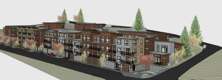 The Planning Division has received an application for a proposed multifamily residential project on Jibboom Street in Downtown Truckee (“Residences at Jibboom”). The project features 83 residential units in four buildings, with 49 rental apartments, 34 for-sale residential units, a 1,294-square-foot laundromat, and a 484-square-foot retail space.