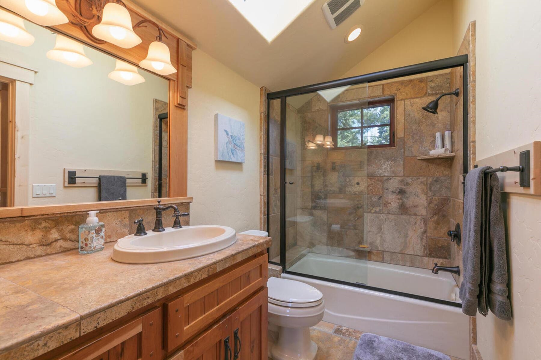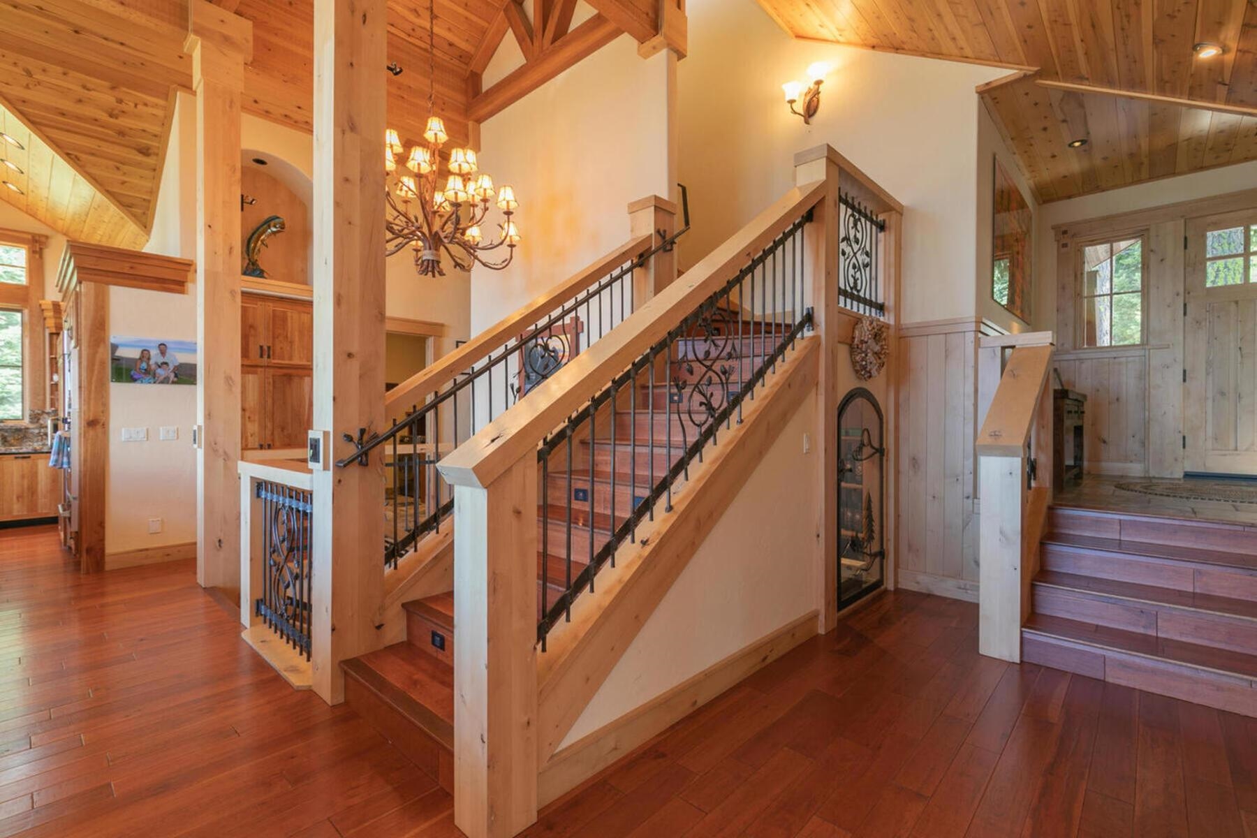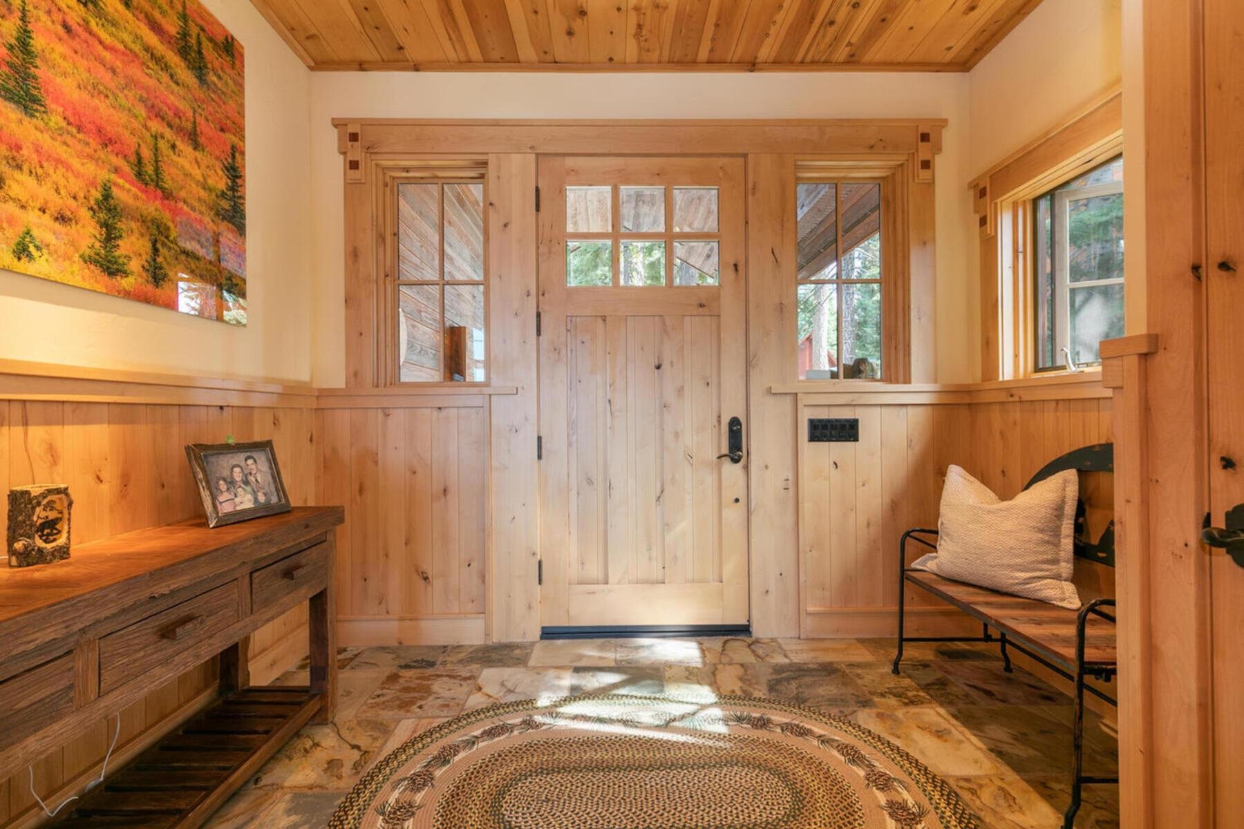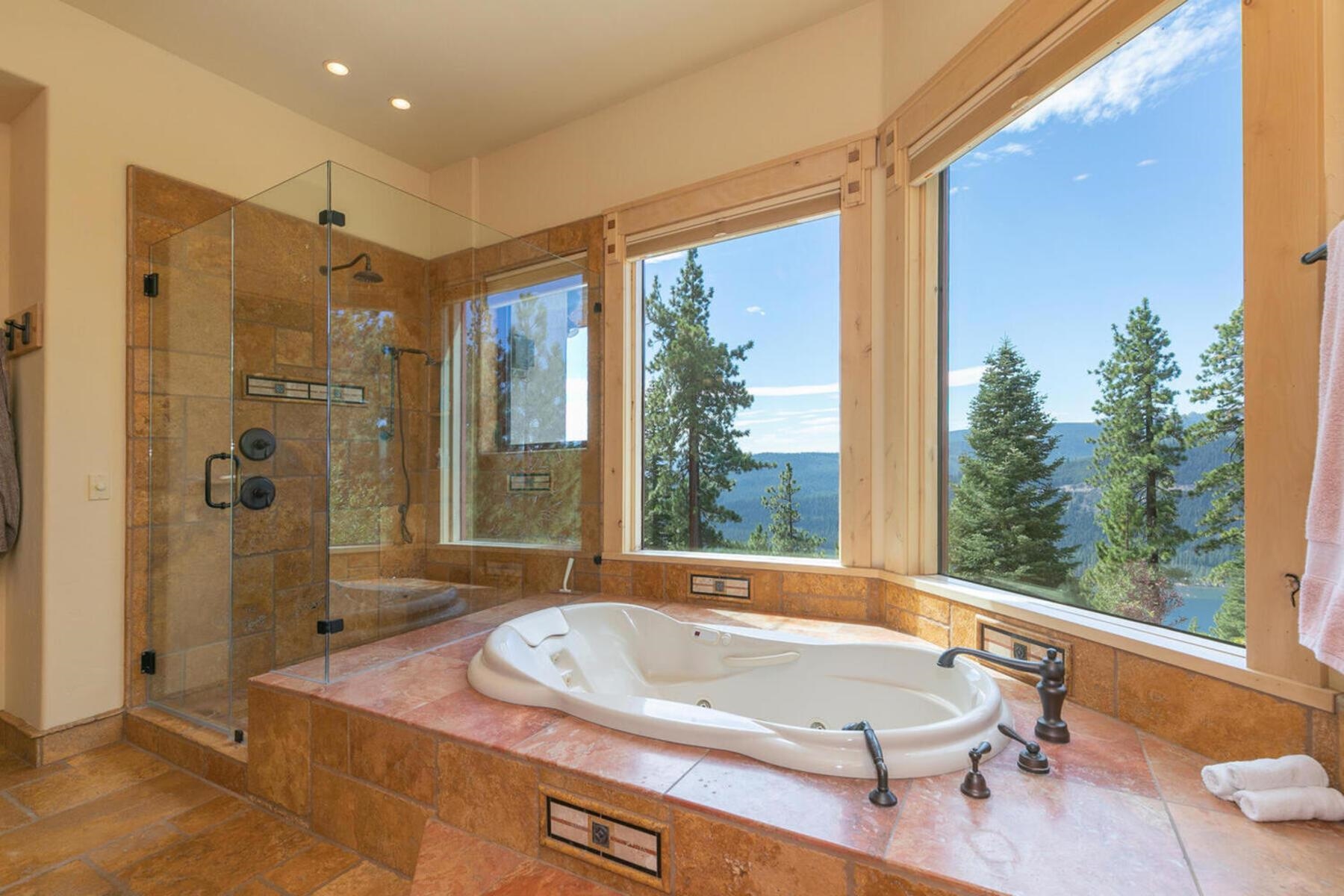 Stunning Custom Mountain Retreat with Unrivaled Panoramic Views! Perched high on one of Tahoe Donner's most coveted ridgelines, 12096 Skislope Way is a truly exceptional luxury mountain home offering awe-inspiring, unobstructed panoramic views of Donner Lake that stretch from the iconic peaks of Northstar Ski Resort to the dramatic contours of Tinker's Knob. From your Great Room, expansive decks, and luxurious primary suite, soak in breathtaking vistas that include the historic railroad line threading through the snow sheds below and the sparkling blue waters of Donner Lake. This custom-crafted residence blends rustic mountain charm with refined finishes and top-tier craftsmanship. Every detail was thoughtfully designed for both elegance and comfort. The heart of the home is the open-concept Great Room, featuring vaulted wood-beam ceilings, a striking stone fireplace, and walls of glass that frame the incredible alpine scenery. The chef's kitchen is equally impressive, anchored by massive slab granite countertops and equipped with professional-grade Viking appliances. Shaker-style cherry cabinetry, Mountain Forge hand-forged iron accents, and rich distressed cherry hardwood floors tie the home's warm, upscale aesthetic together beautifully. Retreat to the primary suite, a private sanctuary with serene views, direct access to the deck and hot tub, and a spa-inspired ensuite bath. Relax in the jetted Jacuzzi tub while listening to the peaceful sounds of a babbling brook water feature just outside your window -- a truly rare and tranquil element in any mountain setting. Outdoor living is elevated with multiple view decks, a lower-level patio, and a private hot tub -- all designed to maximize your enjoyment of the spectacular setting. Whether you're sipping morning coffee at sunrise or unwinding after a day on the slopes, the ever-changing mountain landscape provides an unforgettable backdrop year-round. This home is not just a residence, but an experience -- a rare opportunity to own one of Tahoe Donner's most iconic and visually commanding properties. A perfect blend of luxury, privacy, and natural beauty -- this is mountain living at its finest. Do not miss the chance to make this alpine masterpiece your own.