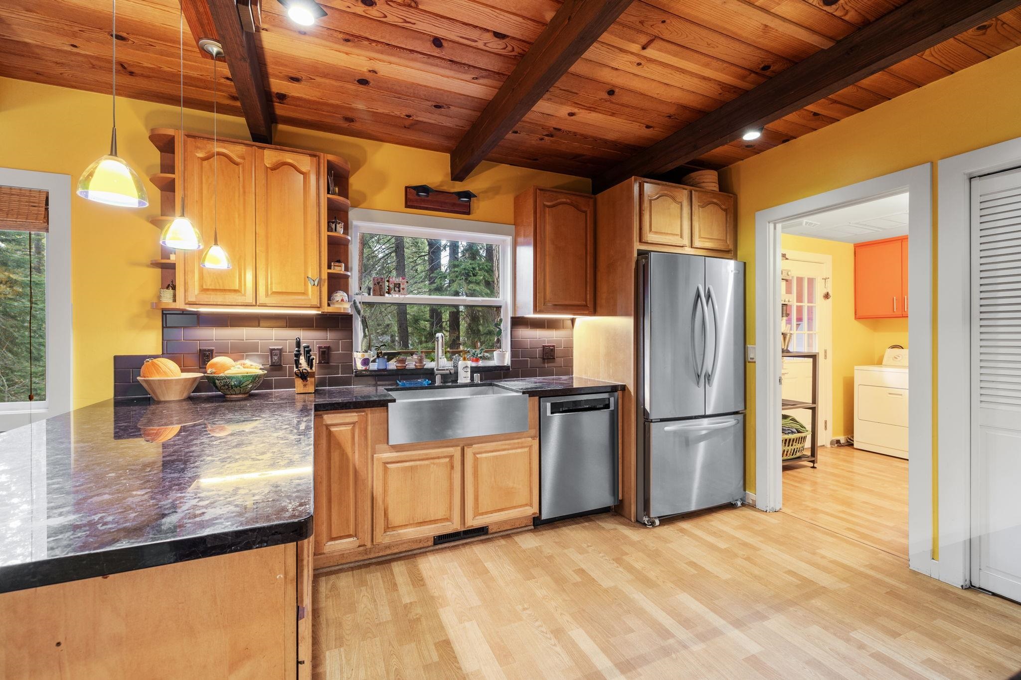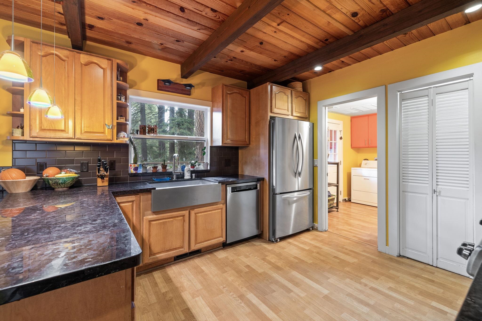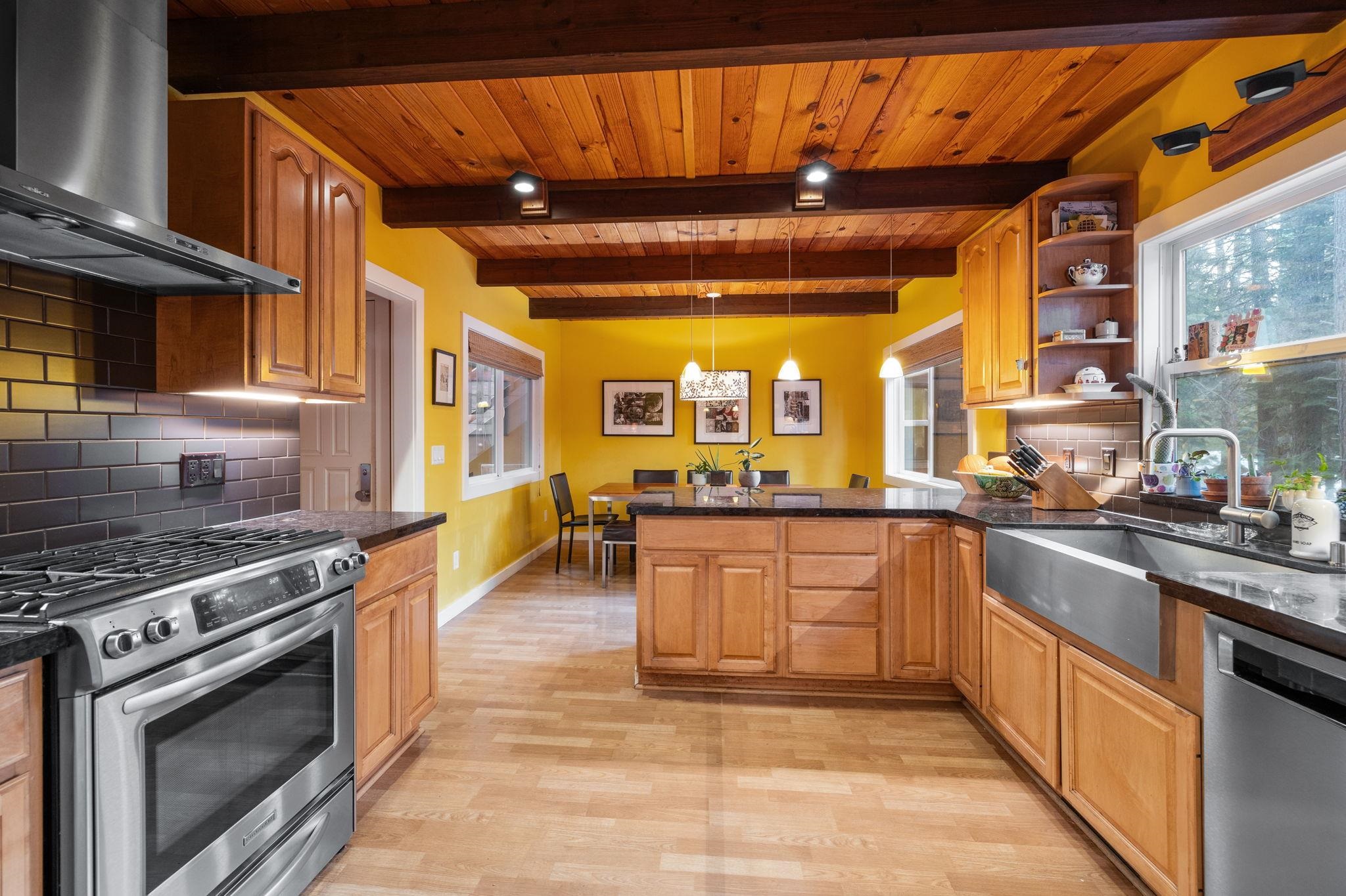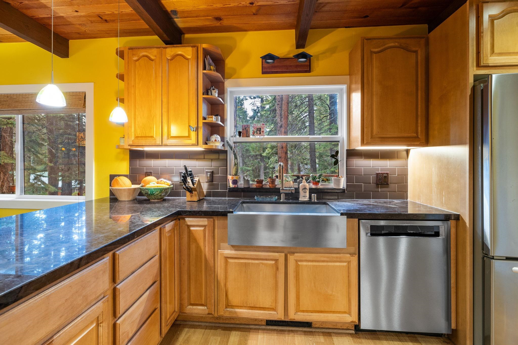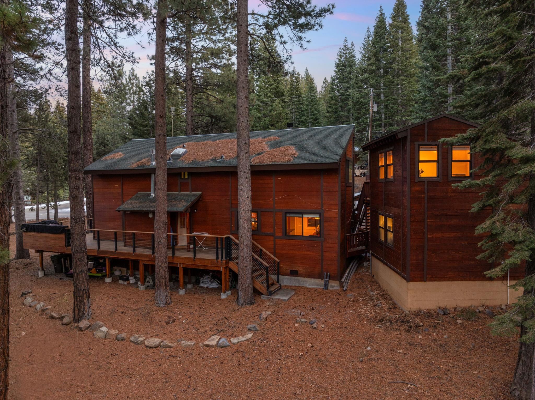 Peaceful in Prosser, this charming 3-bedroom, 2-bathroom home plus bonus room offers a perfect blend of comfort and modern upgrades, set amongst the towering pines with close proximity to excellent trails and Prosser Reservoir! Step inside to discover 1,900 square feet of thoughtfully remodeled space, including the kitchen and baths, lighting, windows, floors and deck. The great room with soaring ceilings features skylights that flood the space with natural light, highlighting the fresh updates throughout. Cozy up by the outdoor gas fireplace or built-in kitchen on the expansive wraparound deck, perfect for entertaining a large crowd! Tandem 2 car heated garage with a workshop space in the back. Above the garage is a large bonus room that has been the perfect office, media room and overflow area for guests. Don't miss the chance to explore the vibrant community of Truckee, make this your home today!
