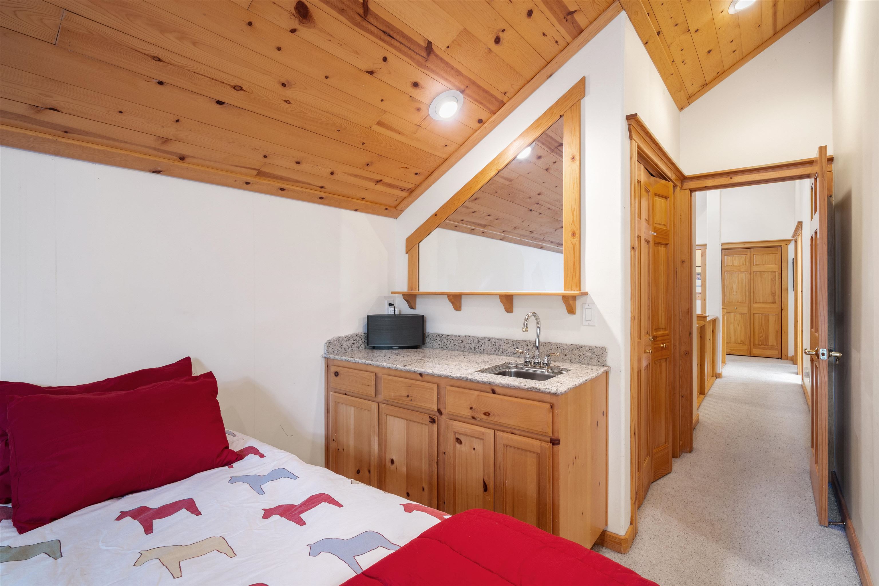 Popular and spacious design in Tahoe Donner! Tucked away on a quiet street, this home sits on a level .42-acre lot with a serene setting and offers over 2,700 sq. ft. of inviting living space. Inside, soaring wood ceilings and expansive windows fill the open layout with natural light. The main level features a generous kitchen with stone countertops that opens to the dining and living areas overlooking the natural landscape, a convenient half bath for guests, and a large primary suite with direct deck access and a tiled bathroom with double vanity, jetted tub, and walk-in shower. Upstairs, you'll find two additional bedrooms, another full bathroom, a spacious loft, and a large bonus room or fourth bedroom complete with its own bathroom, walk-in closet, and wet bar. This versatile space works well for guests, extra sleeping, entertaining, or cozy movie nights. Step outside to enjoy front and rear decks that are perfect for grilling, gathering, or simply relaxing. Additional highlights include two dramatic floor-to-ceiling stone fireplaces, a sauna, laundry room, airlock entry, attached two-car garage and a new refrigerator. A truly fantastic Tahoe Donner home designed for both comfort and function, ready to be enjoyed by its next owners.