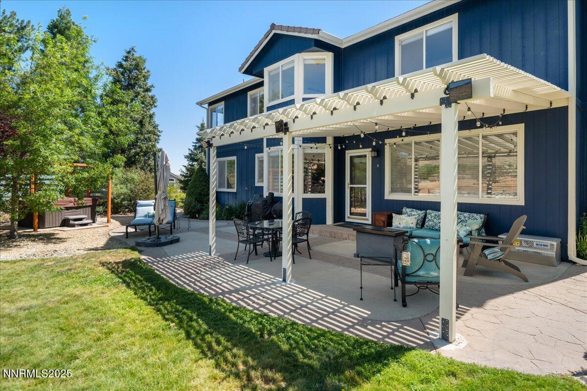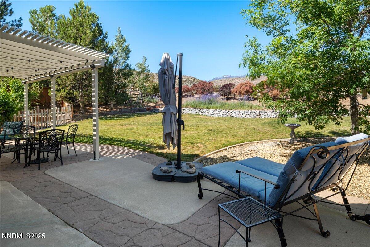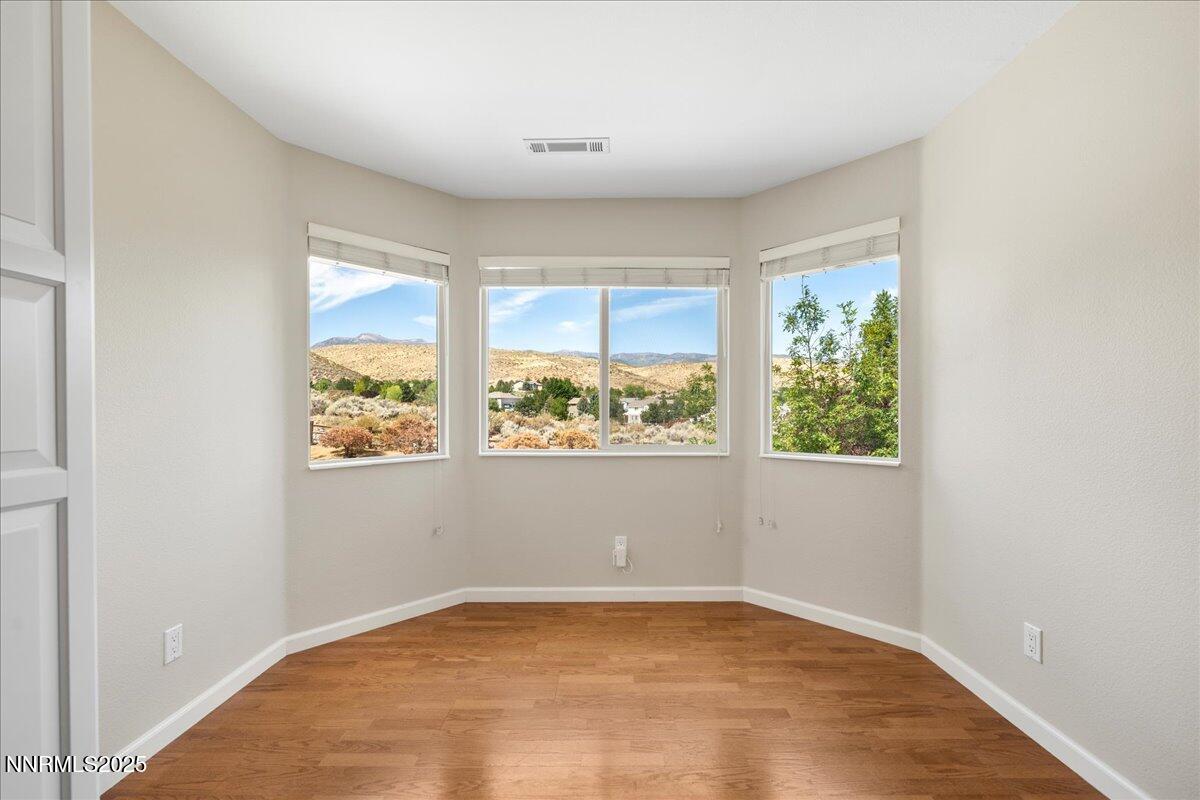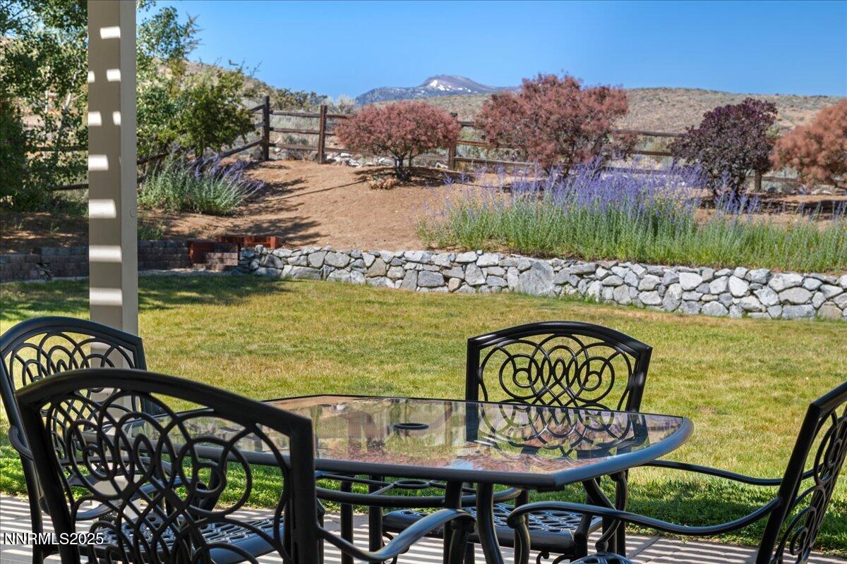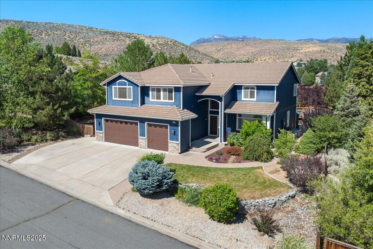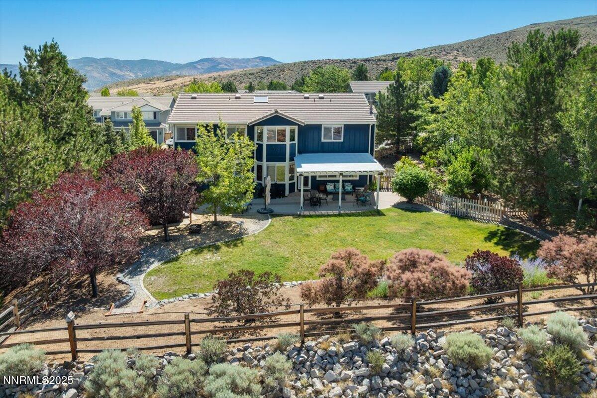 Premier location in Rolling Hills! Freshly painted with newer carpet. Adjacent to a rare 9.5 acres of non-buildable agricultural land, the backyard enjoys both immense privacy and glorious unobstructed mountain views. The inviting floorplan includes a blended Formal Living and Dining area, Kitchen, Great Room, Guest Bedroom, Full Bath, and Laundry all on the first floor. The open and airy upstairs features the Primary Suite, three Guest Bedrooms (one currently utilized as a Hobby Room), Full Bath, plus a tremendous Bonus Room with endless flex space options. The Kitchen features newer dual ovens and granite countertops. The fully-fenced backyard welcomes relaxation and entertainment with a hot tub, several garden beds, and numerous fruit-producing plum, pear, apple, peach and blackberry bushes. Home resides in a simplified, no-fuss Landscape Maintenance Association. Conveniently located to local schools, shopping and dining amenities, and easy-breezy access to the Reno-Tahoe International Airport (20 minutes), Mount Rose Ski Resort (20 minutes), and a short 30-minute drive to scenic Lake Tahoe. Excellent opportunity to reside in the heart of South Suburban Reno!