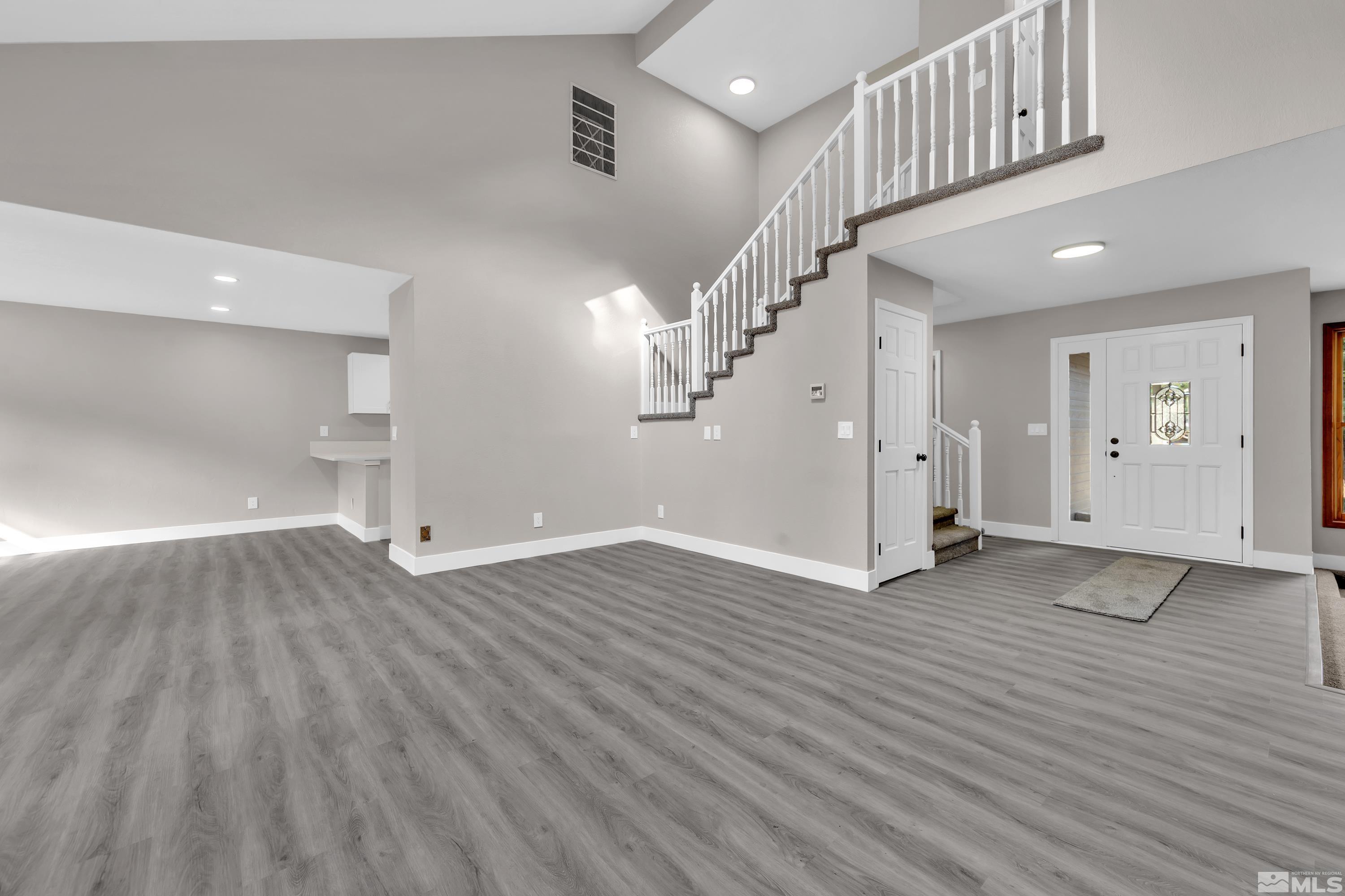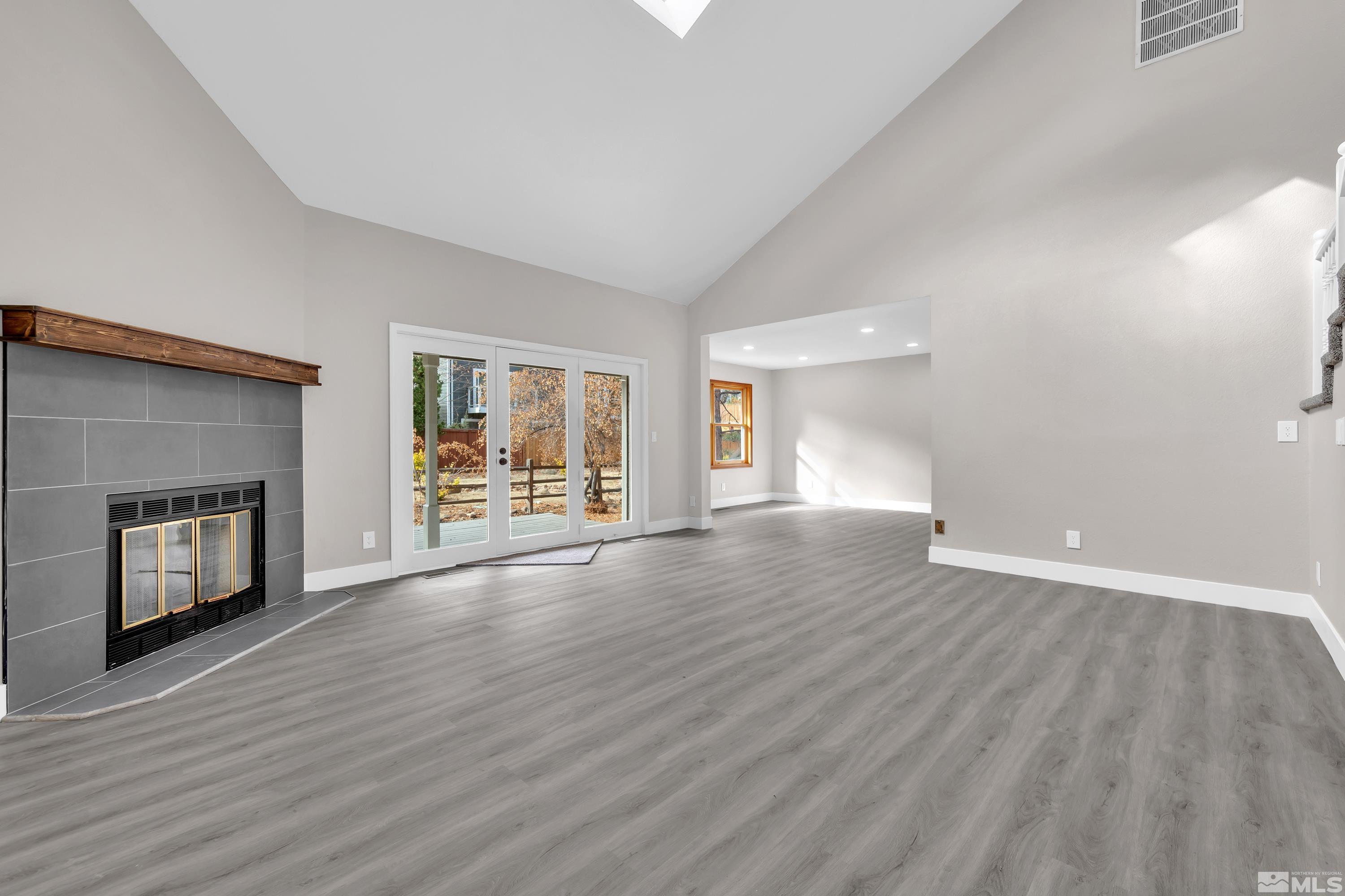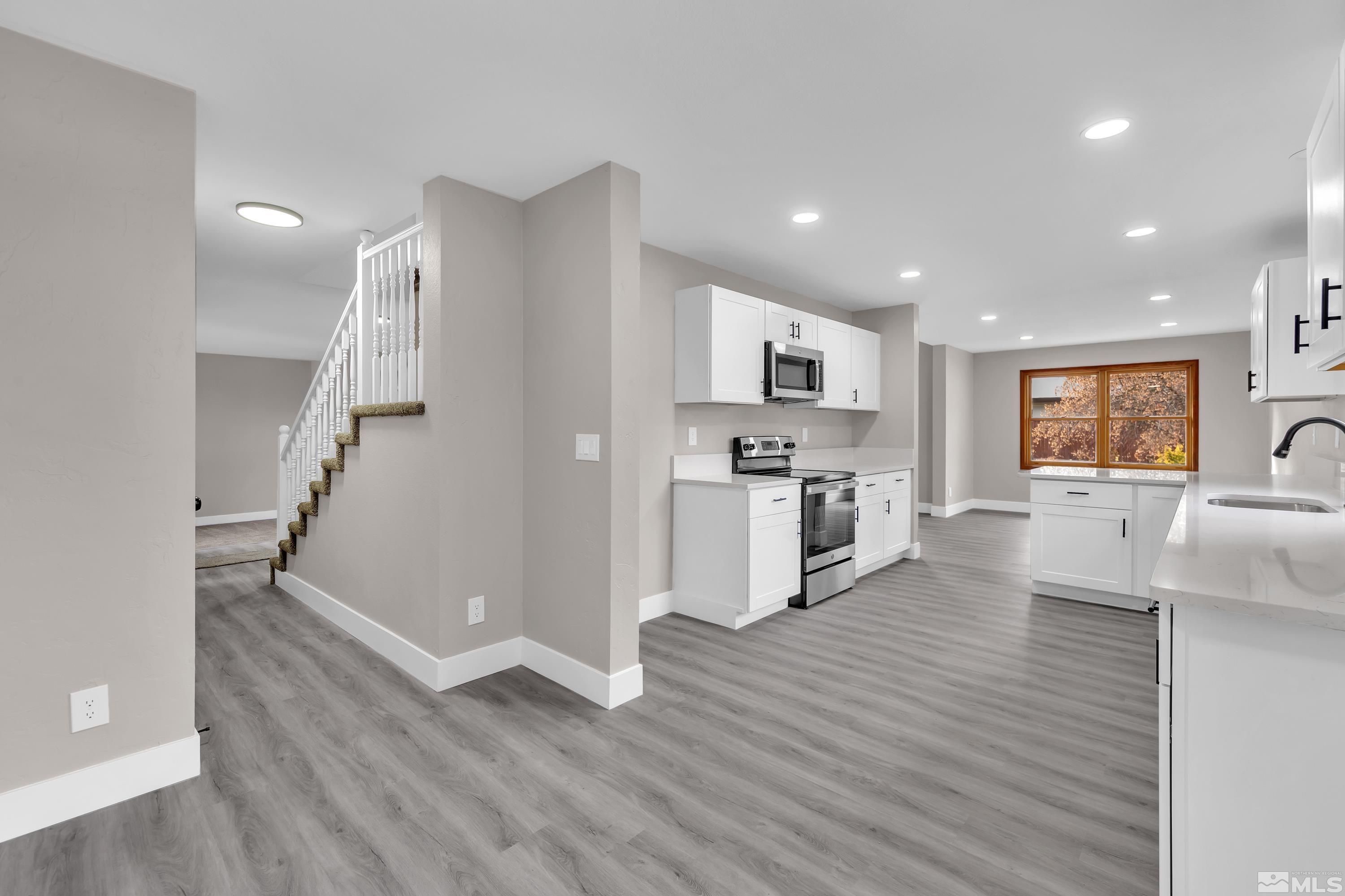 Beautifully fully remodeled home with so many beautiful finishes. Driving up the driveway you're greeted with fresh exterior paint and mature landscaping! Walking in the front door is new luxury vinyl plank and high vaulted ceiling. The kitchen has new cabinets and beautiful white quartz with black shaded streaks. The kitchen has a nice sized breakfast nook and on the opposite side is a large dining room that opens to the family room. The new fireplace surround tile and mantle are a great way to unwind, after a long day or rest in the separate living room that also has a fireplace. There are three large secondary bathrooms downstairs with a full ball and half bath. Walking up stairs with new high end carpet to the master retreat! The bedroom is oversized with a huge walk in closet that is separated beautifully for two people. The huge bathroom has double vanities and a separate linen cabinets and has a large walk-in shower with soap niche.