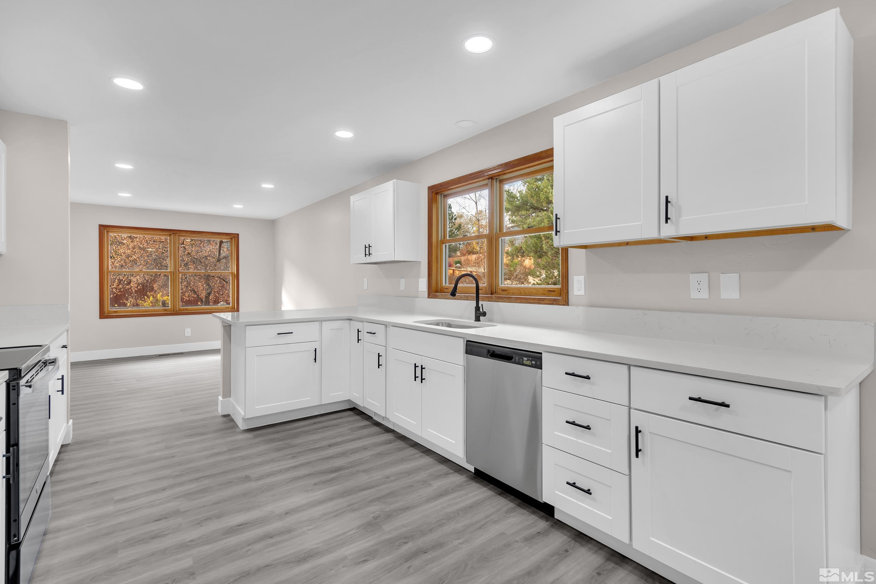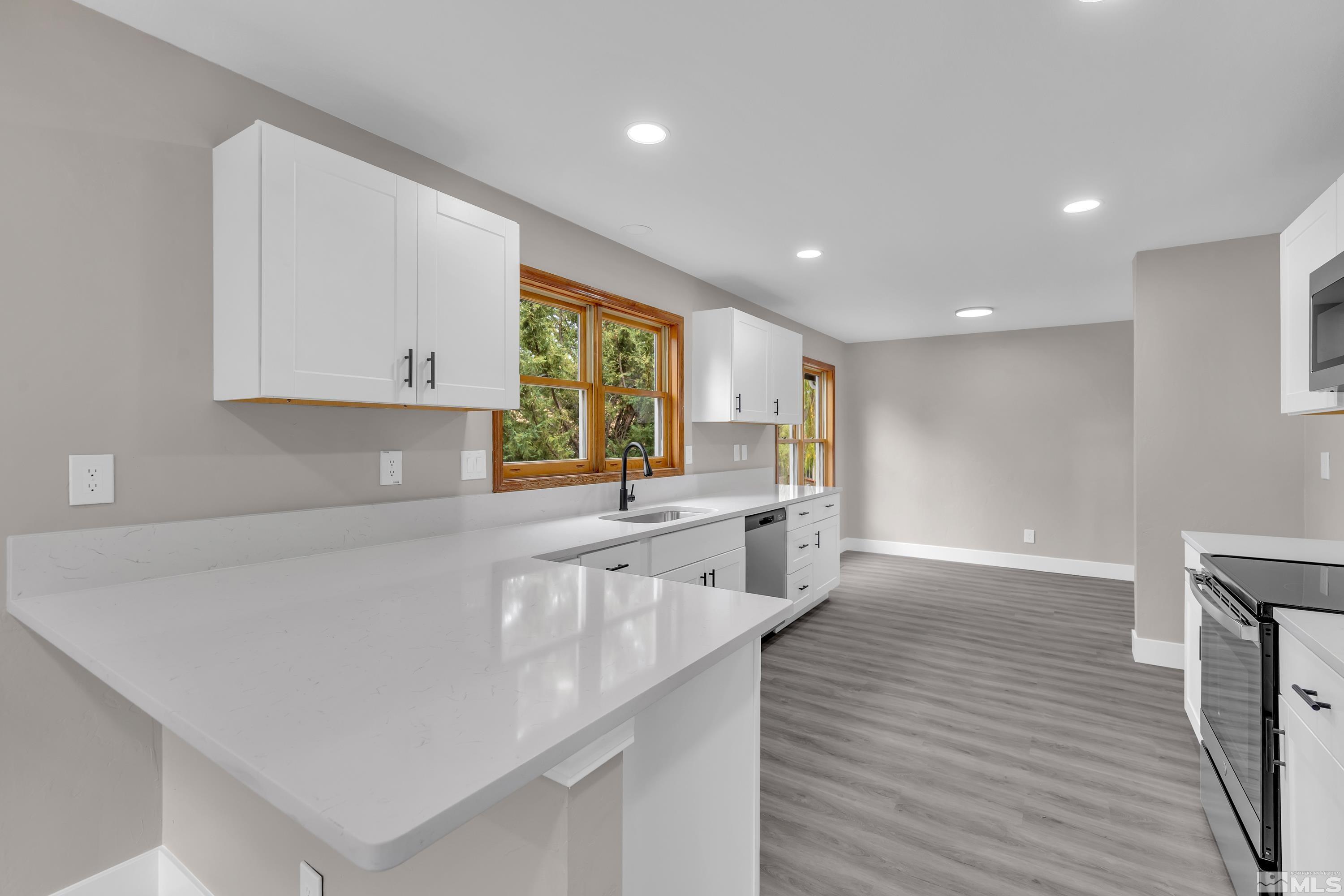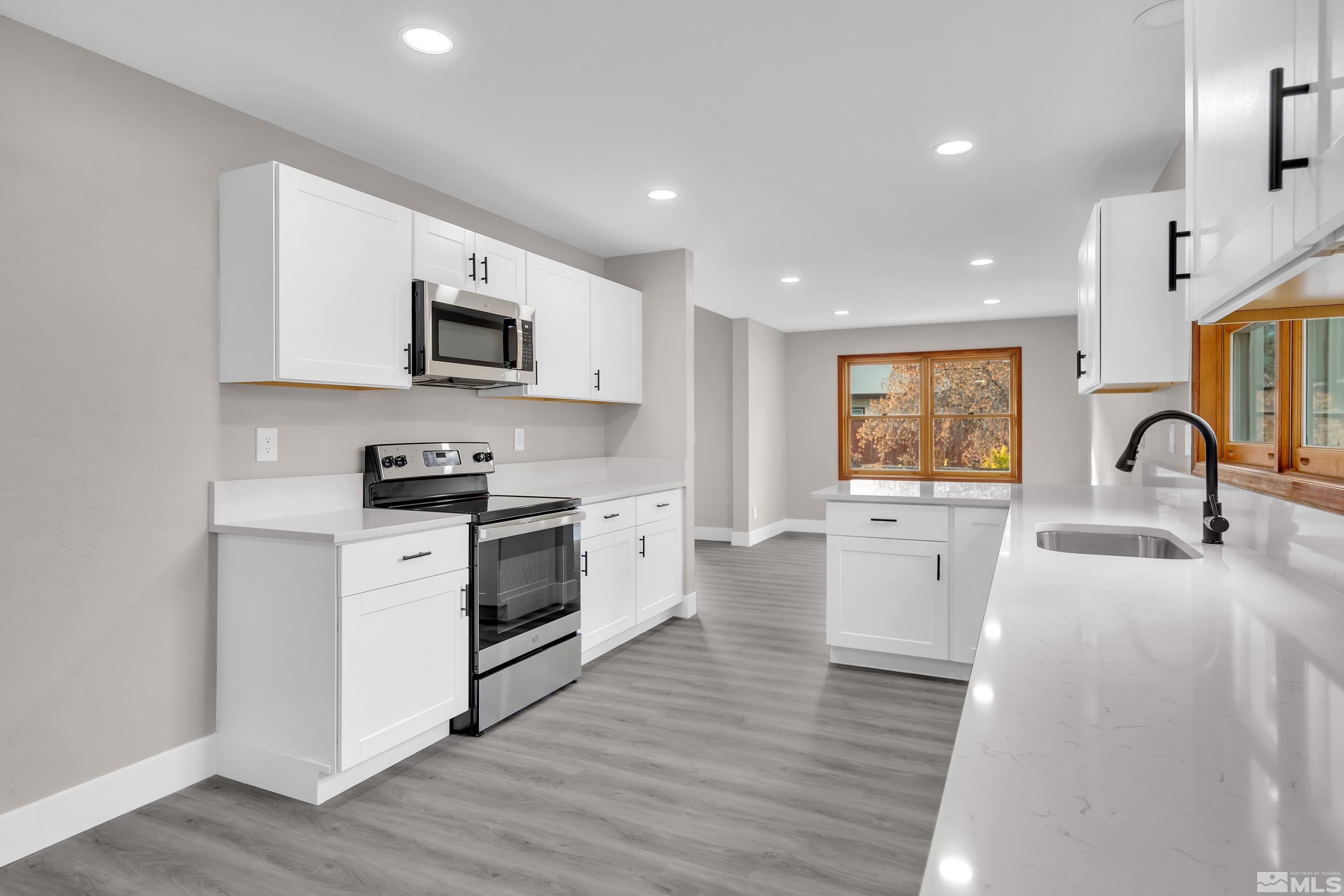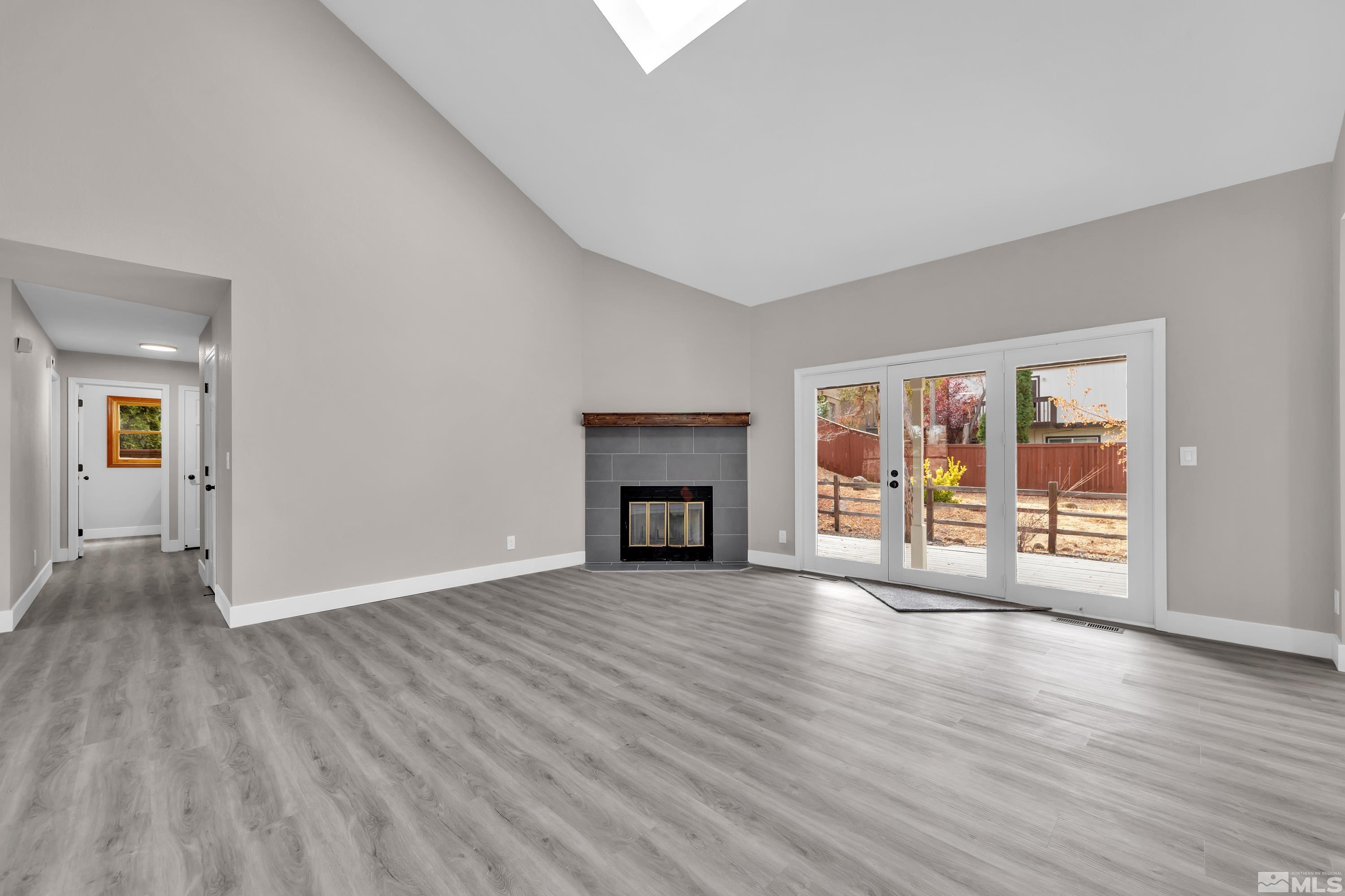 Beautifully fully remodeled home with so many beautiful finishes. Driving up the driveway you're greeted with fresh exterior paint and mature landscaping! Walking in the front door is new luxury vinyl plank and high vaulted ceiling. The kitchen has new cabinets and beautiful white quartz with black shaded streaks. The kitchen has a nice sized breakfast nook and on the opposite side is a large dining room that opens to the family room. The new fireplace surround tile and mantle are a great way to unwind, after a long day or rest in the separate living room that also has a fireplace. There are three large secondary bathrooms downstairs with a full ball and half bath. Walking up stairs with new high end carpet to the master retreat! The bedroom is oversized with a huge walk in closet that is separated beautifully for two people. The huge bathroom has double vanities and a separate linen cabinets and has a large walk-in shower with soap niche.
